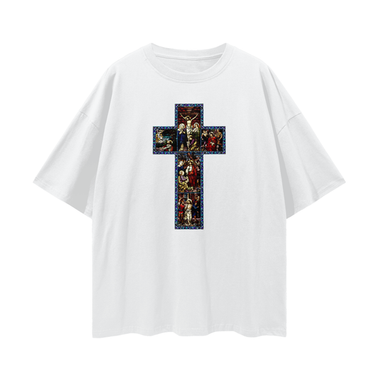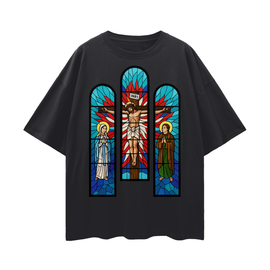Religious Jesus Cathedral Glass Graphic Oversized T Shirt