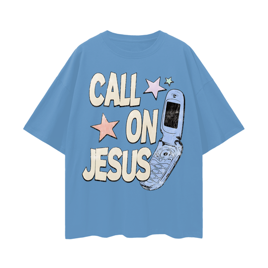 Religious Call On Jesus Cell Phone Y2K Vintage Like Graphic Oversized T Shirt