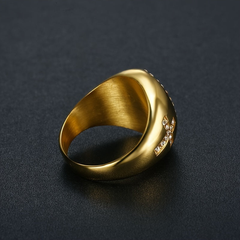 A radiant symbol of faith and grace, this gold-toned ring features a delicate image of the Virgin Mary surrounded by shimmering rhinestones. Elegant and eye-catching, it’s designed to inspire devotion while adding a touch of sparkle to your everyday look. Whether worn as a personal keepsake or gifted with love, this ring is a beautiful reminder of protection, peace, and spiritual strength.