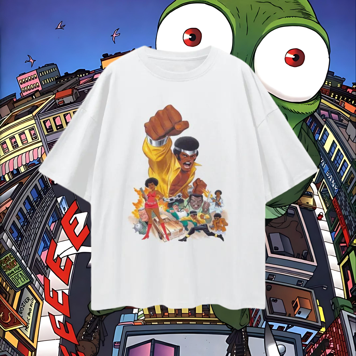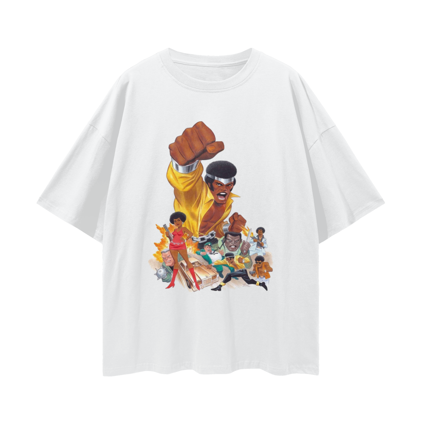 The Bruce Timm’s Power Man 90s Vintage Like Graphic Oversized T Shirt is a stylish and nostalgic piece that celebrates the iconic 90s comic book era, featuring bold, vintage-inspired artwork by the acclaimed artist Bruce Timm. Its oversized fit offers a comfortable, relaxed look perfect for fans of classic superhero comics and retro fashion. Made from quality materials, this T-shirt combines eye-catching graphics with a comfortable wear, making it ideal for casual outings or comic book conventions. Whether you're a fan of Power Man (Luke Cage) or a collector of vintage comic apparel, this shirt is a great addition to any superhero or 90s-themed wardrobe.