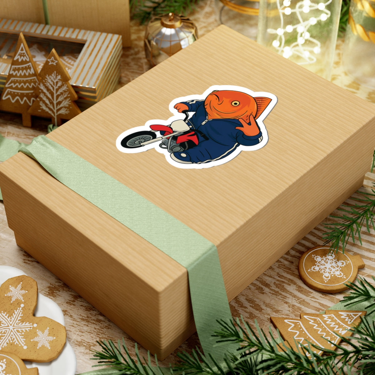 Make a splash on land with this hilarious Funny Fish on a Dirt Bike sticker! Whether you're a motocross maniac or just love a good fish-out-of-water moment, this sticker brings the laughs. Featuring a wild-eyed fish in full dirt bike gear—goggles, helmet, and maybe even some floaties—tearing it up across dry land like it owns the track.
