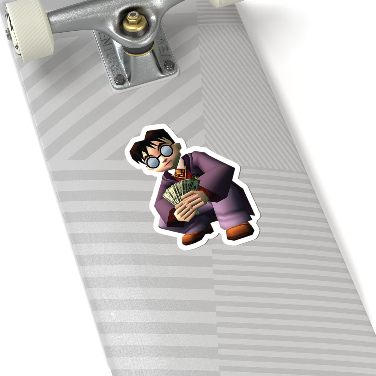 Show off your magical hustle with this hilarious Harry Potter Money Spread Sticker! Featuring the Boy Who Lived casually flexing a stack of galleons like he's the richest wizard in Diagon Alley, this sticker mixes Hogwarts charm with pure comedic gold.