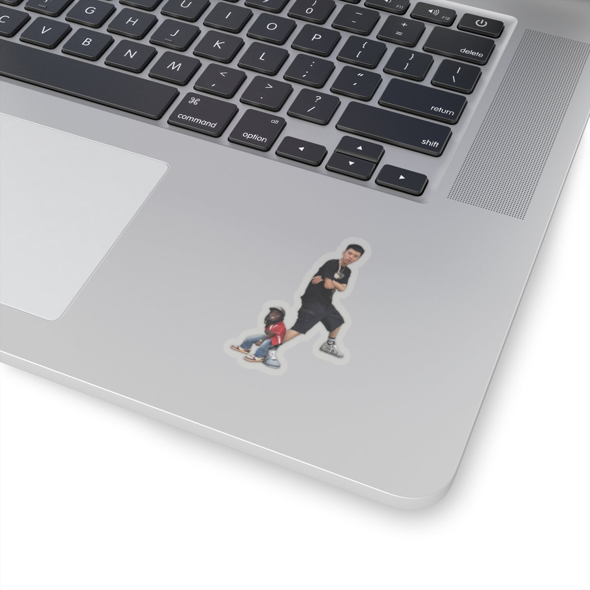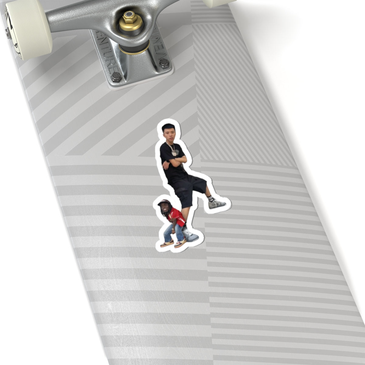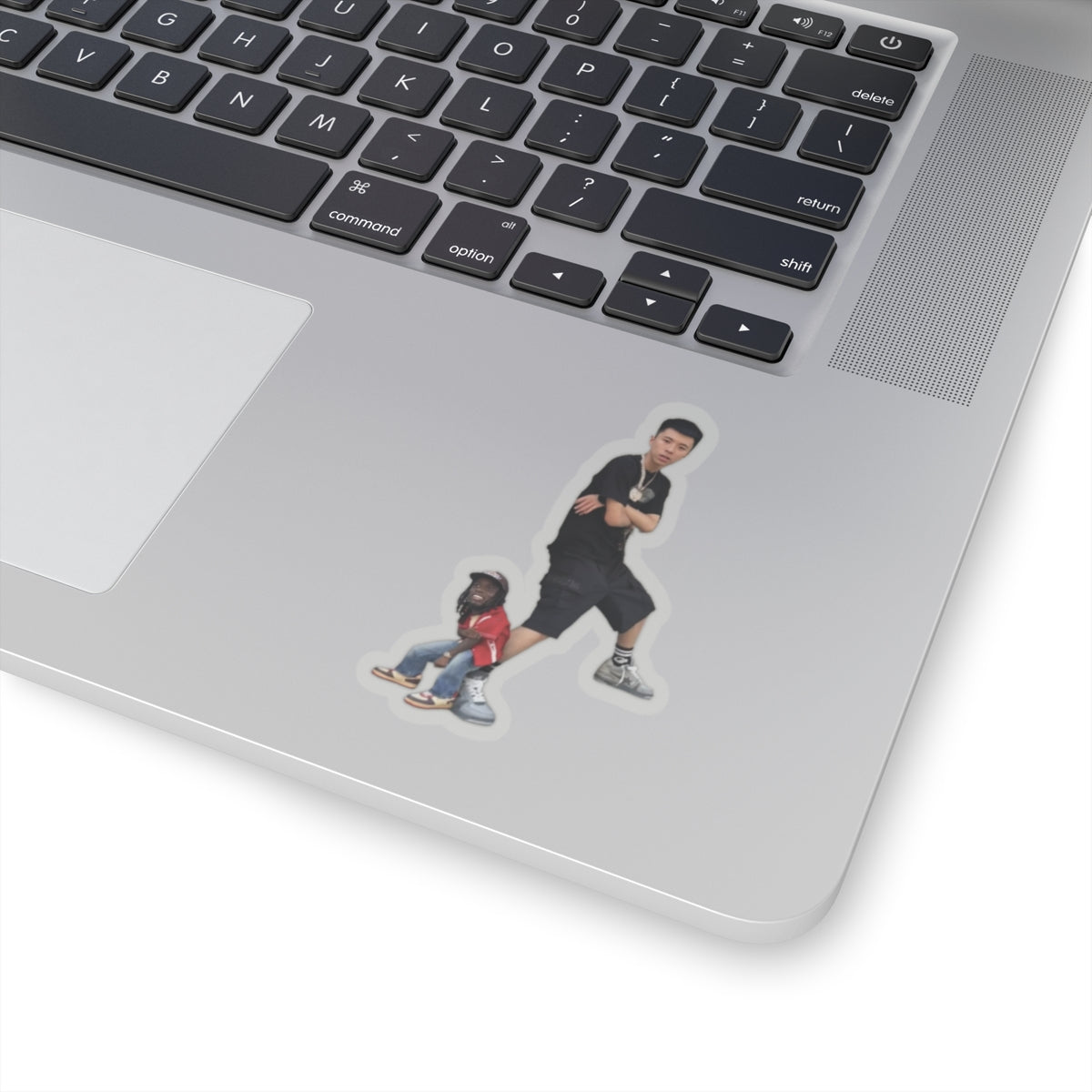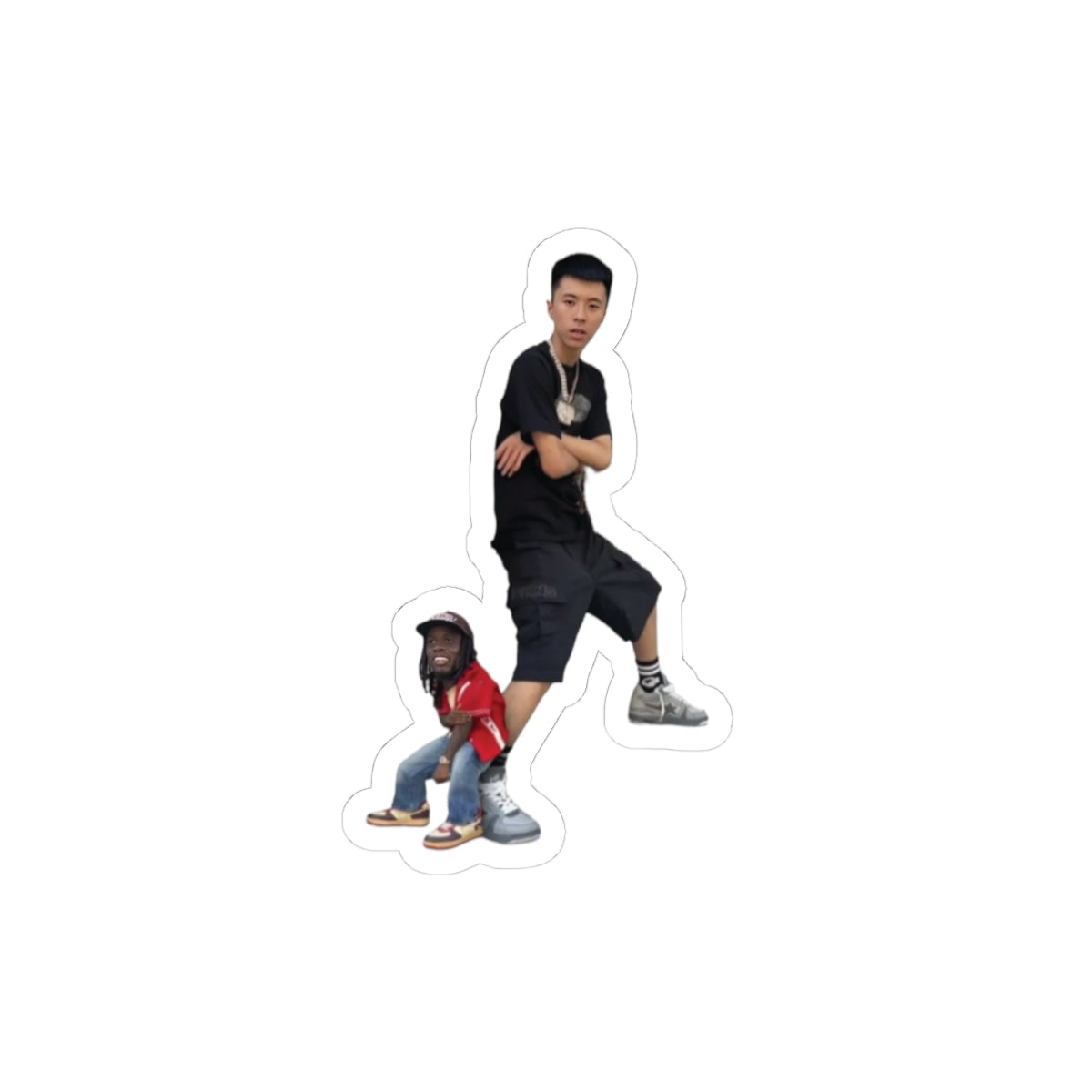 The "Small Body Kai Cenat with Ray in Japan Funny Sticker" features a whimsical, cartoonish depiction of popular streamer Kai Cenat alongside his friend Ray, both showcased in a comedic style. Set against a vibrant backdrop that highlights iconic Japanese culture, the sticker captures their playful personalities and camaraderie. It's perfect for fans looking to add a humorous touch to their belongings, celebrating the lighthearted vibes of their adventures in Japan.