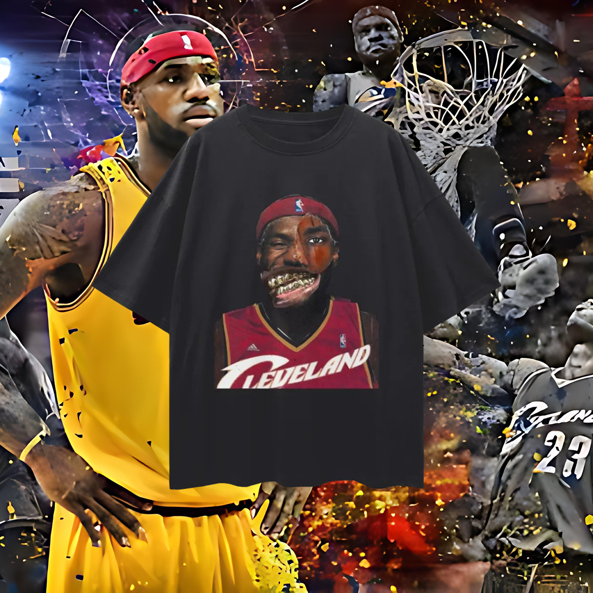 The Lebron James Cavs Vintage Like Graphic Oversized T-Shirt is a stylish and nostalgic piece perfect for basketball fans, featuring a vintage-inspired design of LeBron James during his Cavaliers days. Made with comfortable materials and an oversized fit, it offers a trendy look that celebrates LeBron's legacy with the Cavaliers. Ideal for casual wear or game day, this shirt combines sporty appeal with a touch of retro flair, making it a must-have for collectors and fans alike.