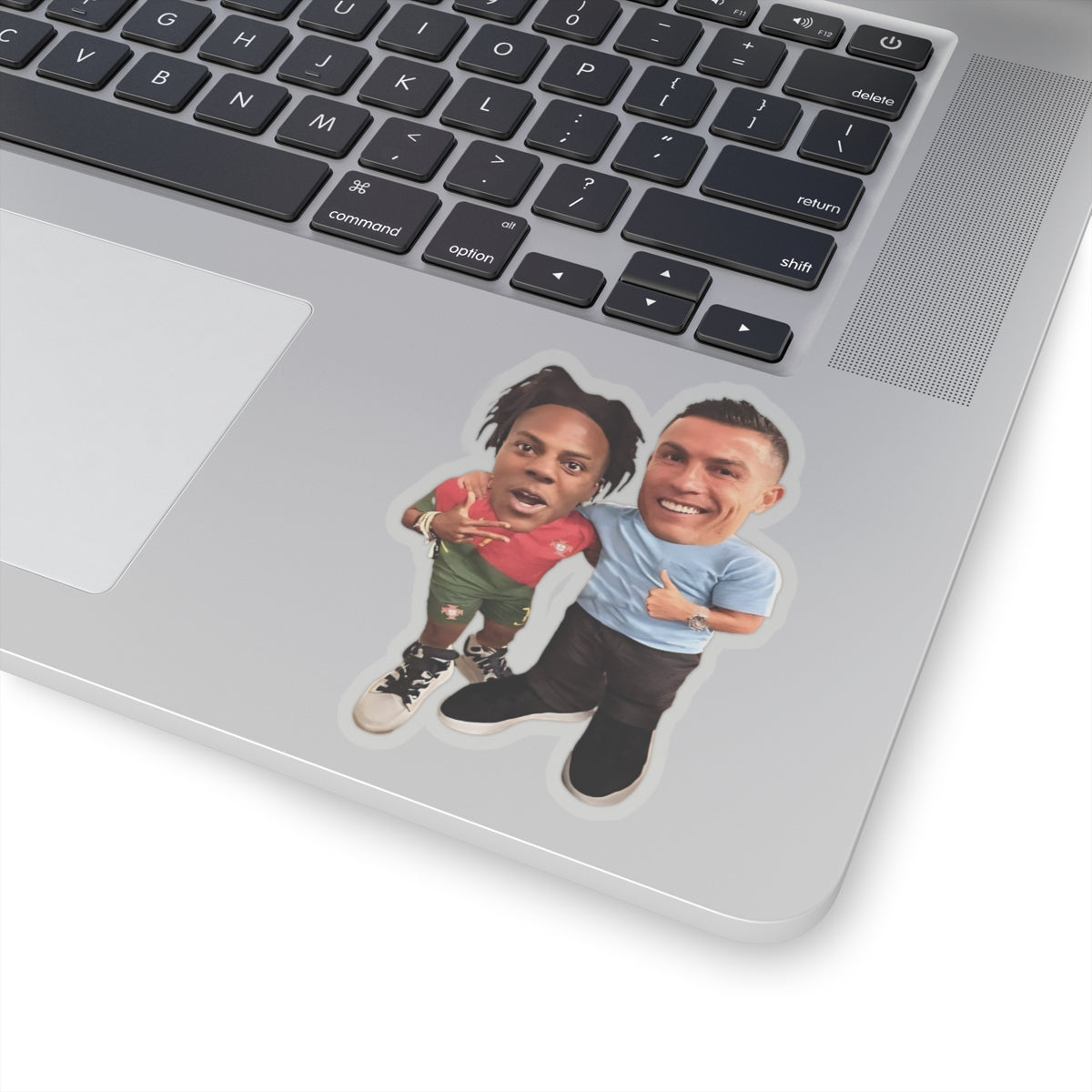 Get ready to laugh with the Mini IShowSpeed & Ronaldo Funny Sticker! Featuring a hilarious cartoon-style version of Speed and Ronaldo in a goofy moment, this sticker brings the perfect mix of football hype and internet humor. Great for decorating laptops, phones, water bottles, or anything that needs a touch of meme energy!