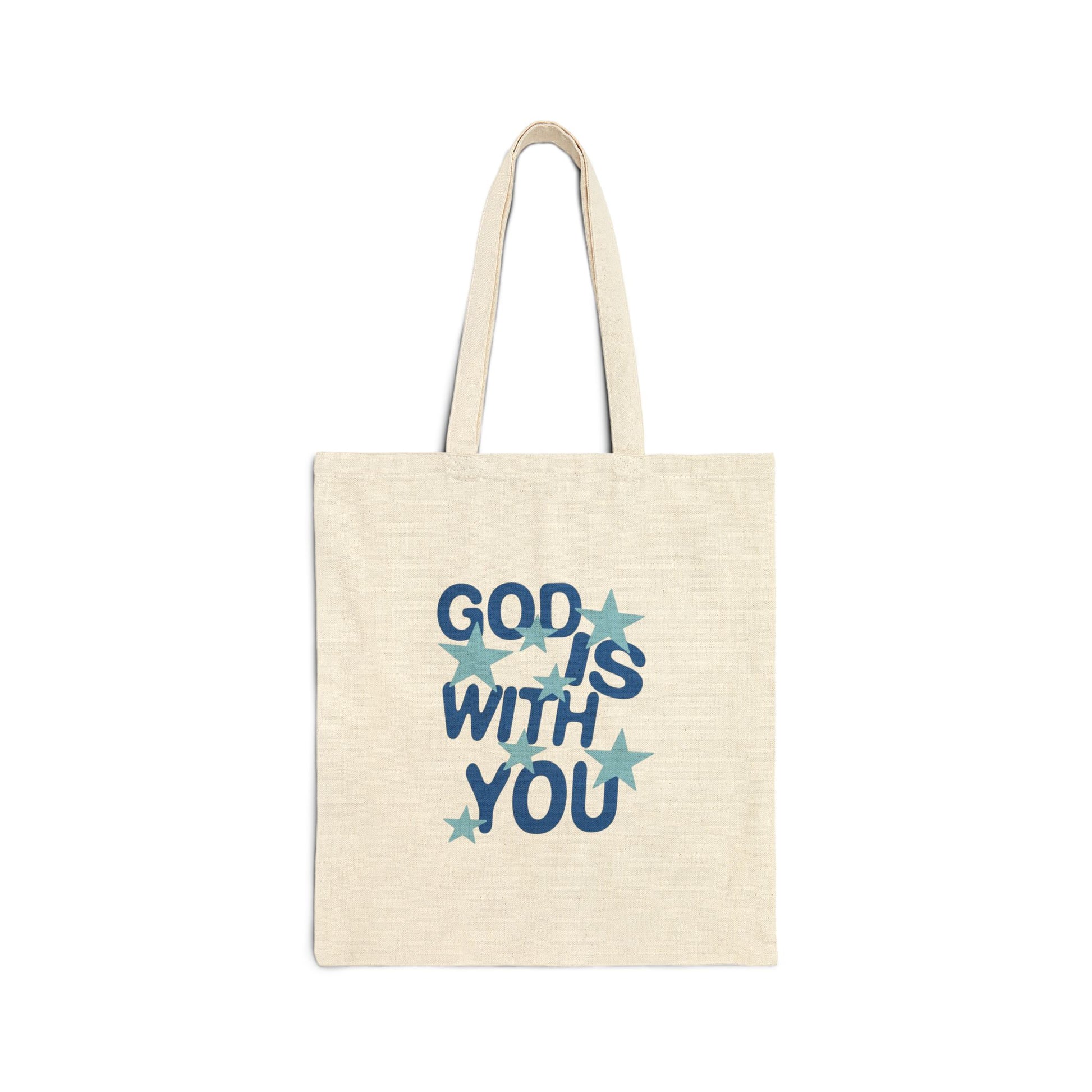 Carry your faith with you wherever you go with our “God Is With You” tote bag. This beautifully designed bag blends simplicity with a powerful reminder of God's constant presence. Made from durable, eco-friendly materials, it's perfect for daily use—whether you're heading to church, the gym, or the store. Featuring bold, uplifting typography and a clean, modern layout, this tote is more than just a bag—it's a message of hope, strength, and reassurance. Let it be a daily encouragement that you're never alone—God is always by your side.