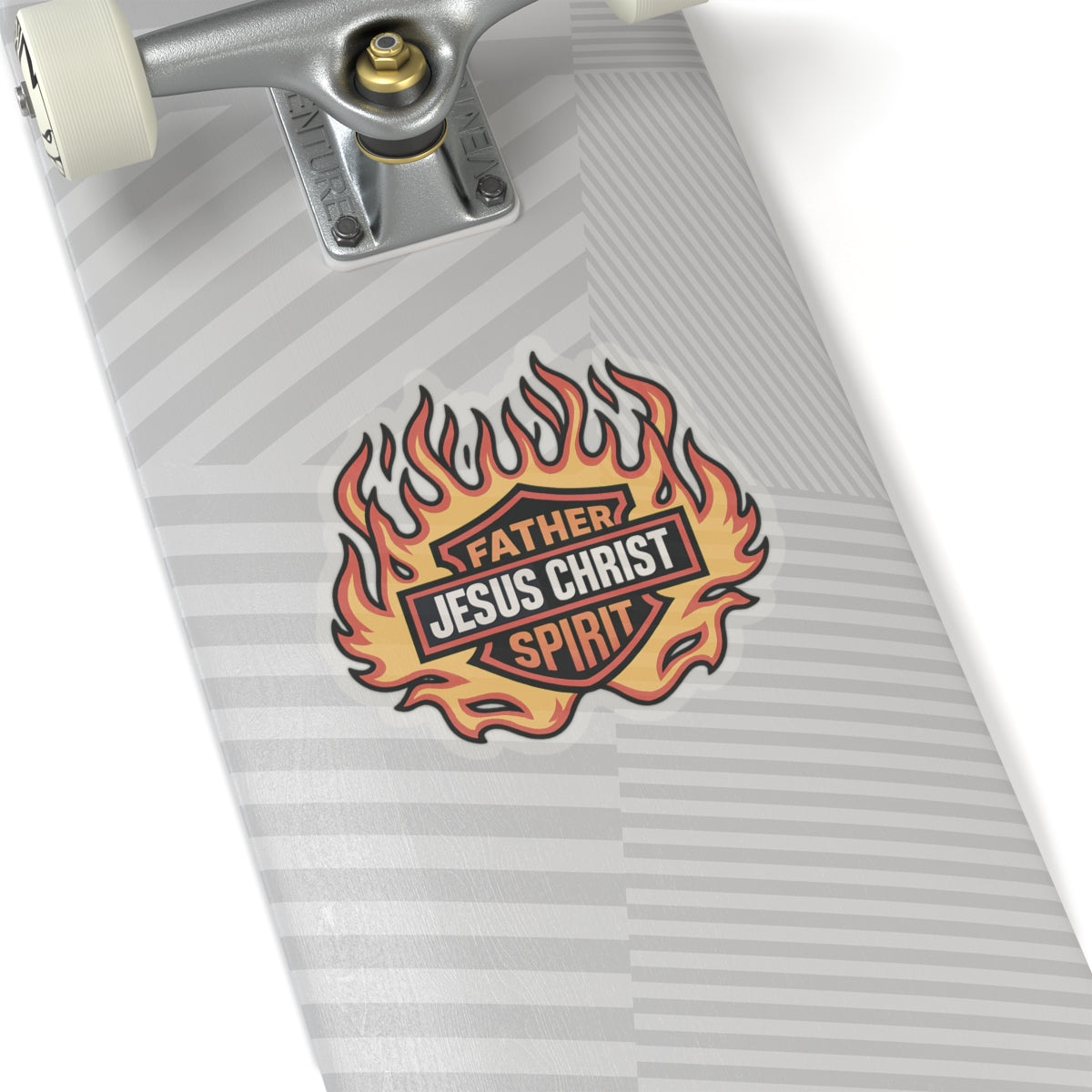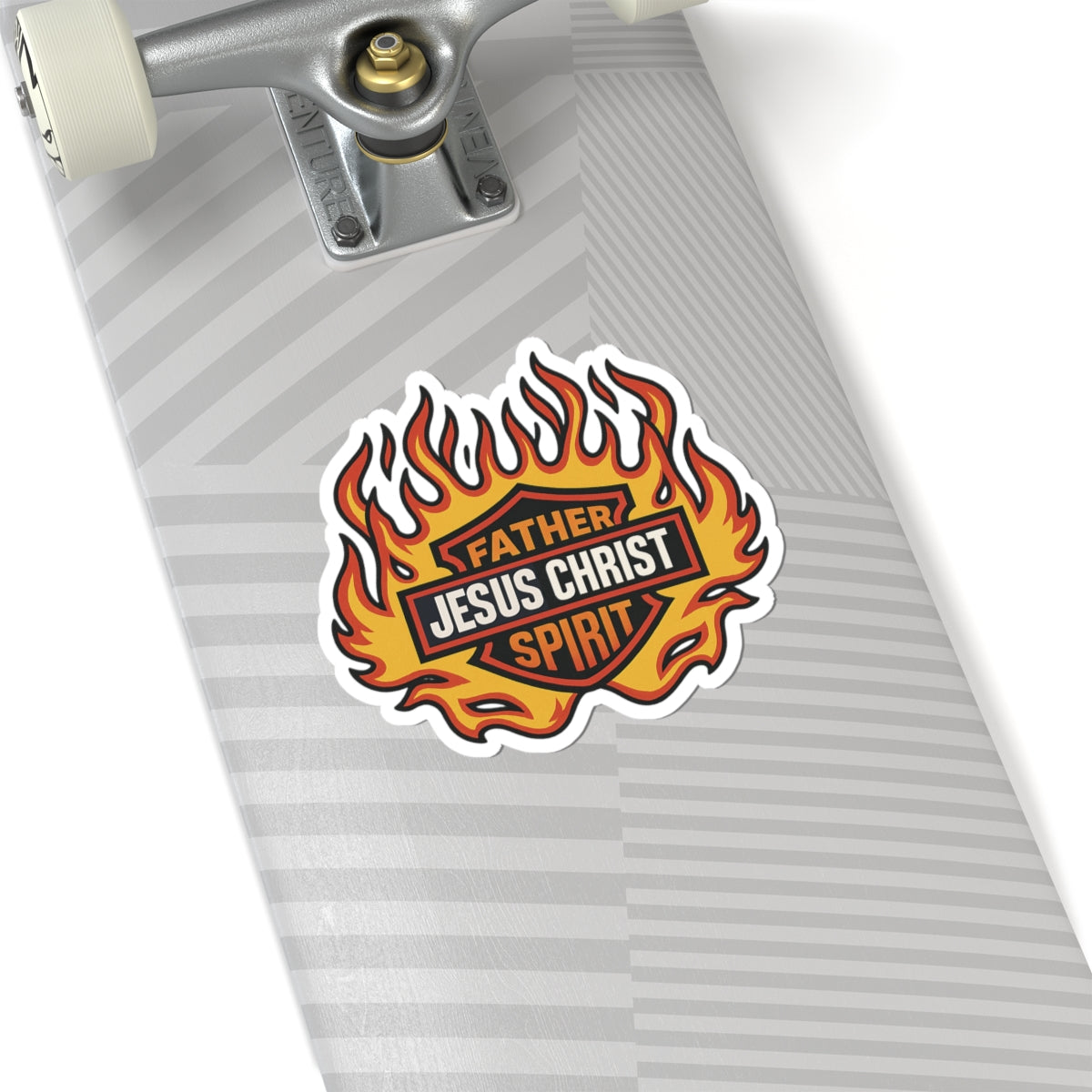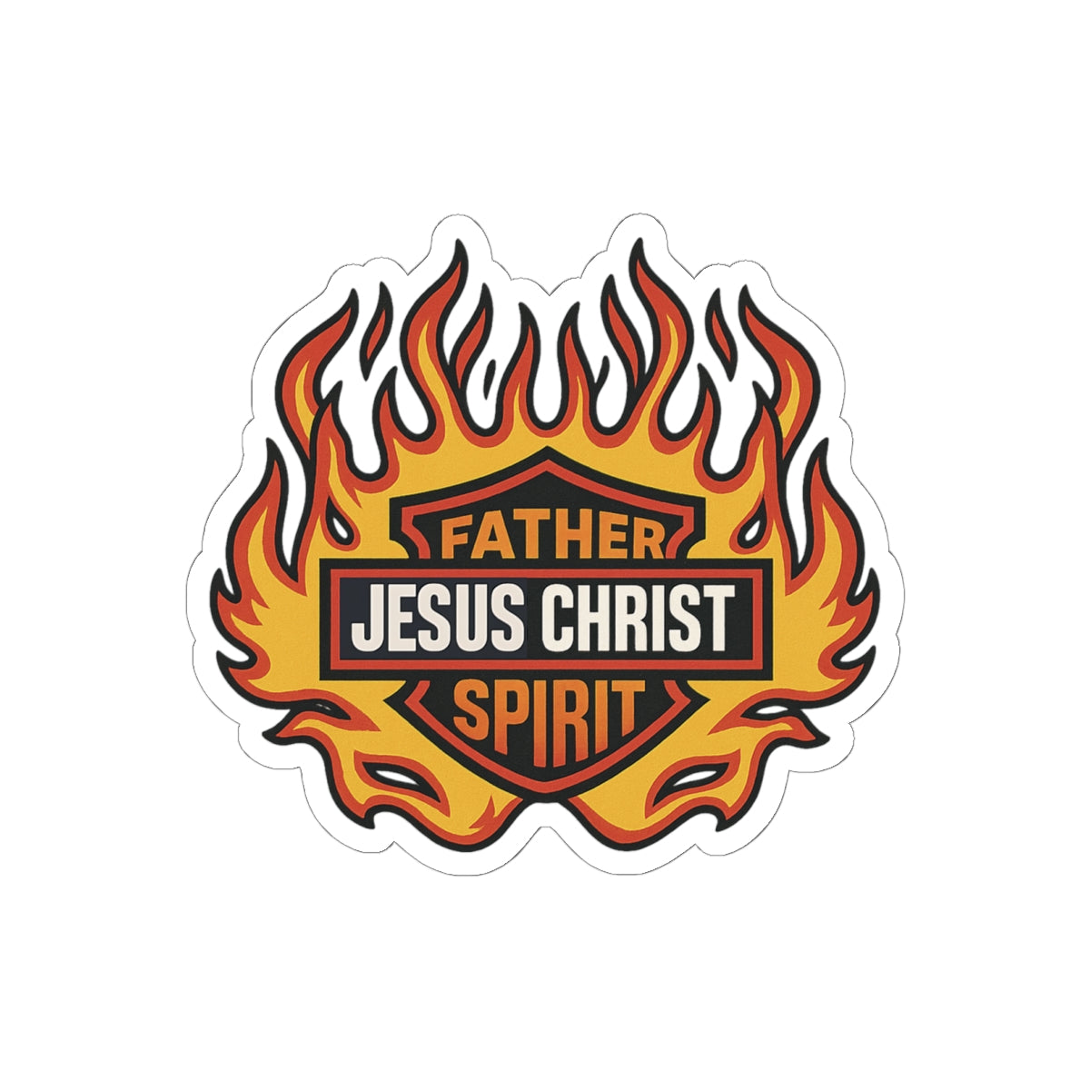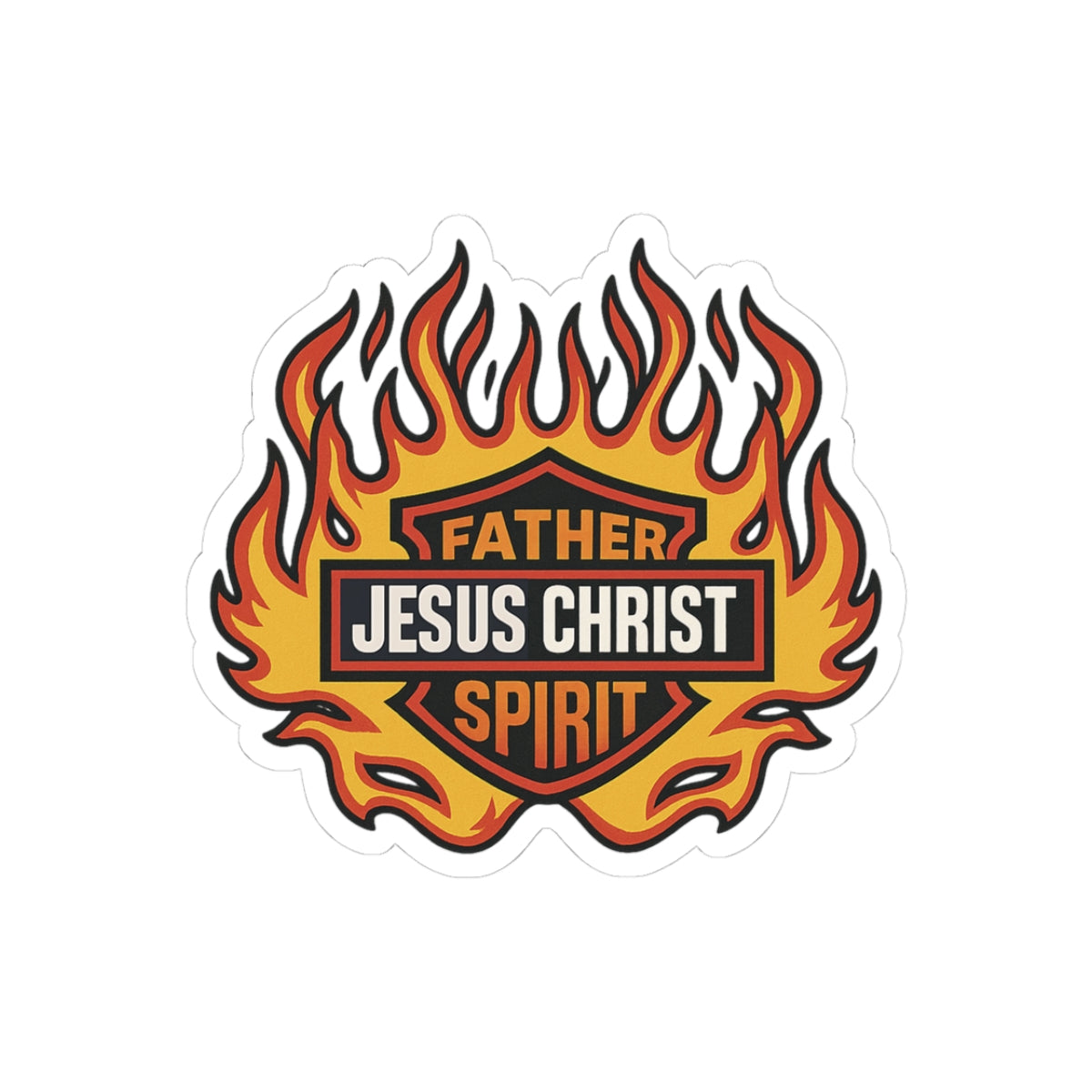 Ride with purpose and power with this bold Jesus Christ sticker inspired by the legendary Harley Davidson aesthetic. Featuring rugged typography, flaming accents, and a cross-centered design, it blends biker grit with gospel truth—perfect for believers who live loud and ride free.