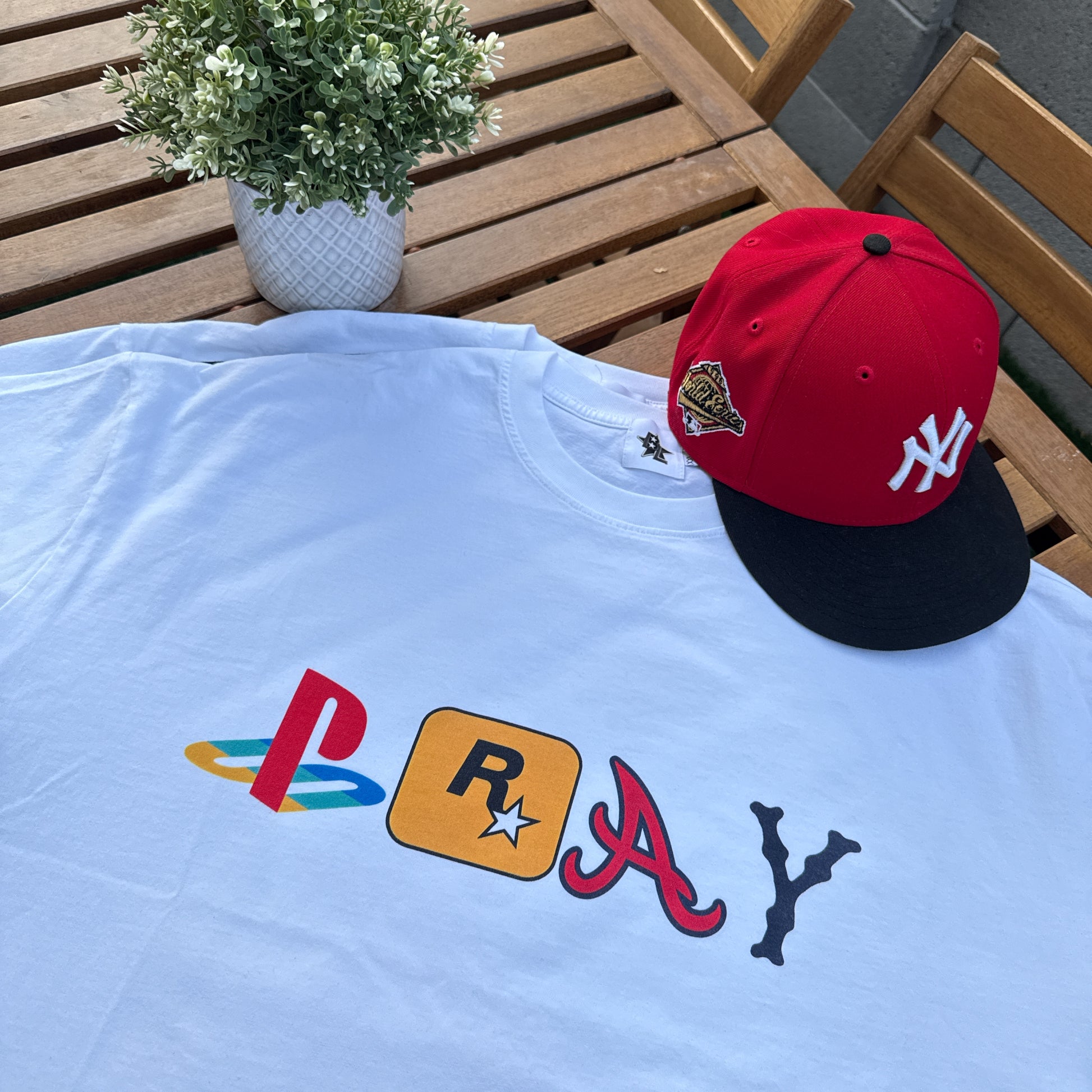 Make a bold statement of faith and fashion with this oversized tee featuring a powerful graphic of Jesus in prayer, surrounded by heavenly light and symbolic logos of devotion. Inspired by vintage streetwear with a spiritual twist, this design merges timeless religious imagery with modern graphic elements. Crafted for comfort and impact, it's perfect for daily wear, prayer gatherings, or making your faith known through style. A must-have for believers who walk in purpose and power.