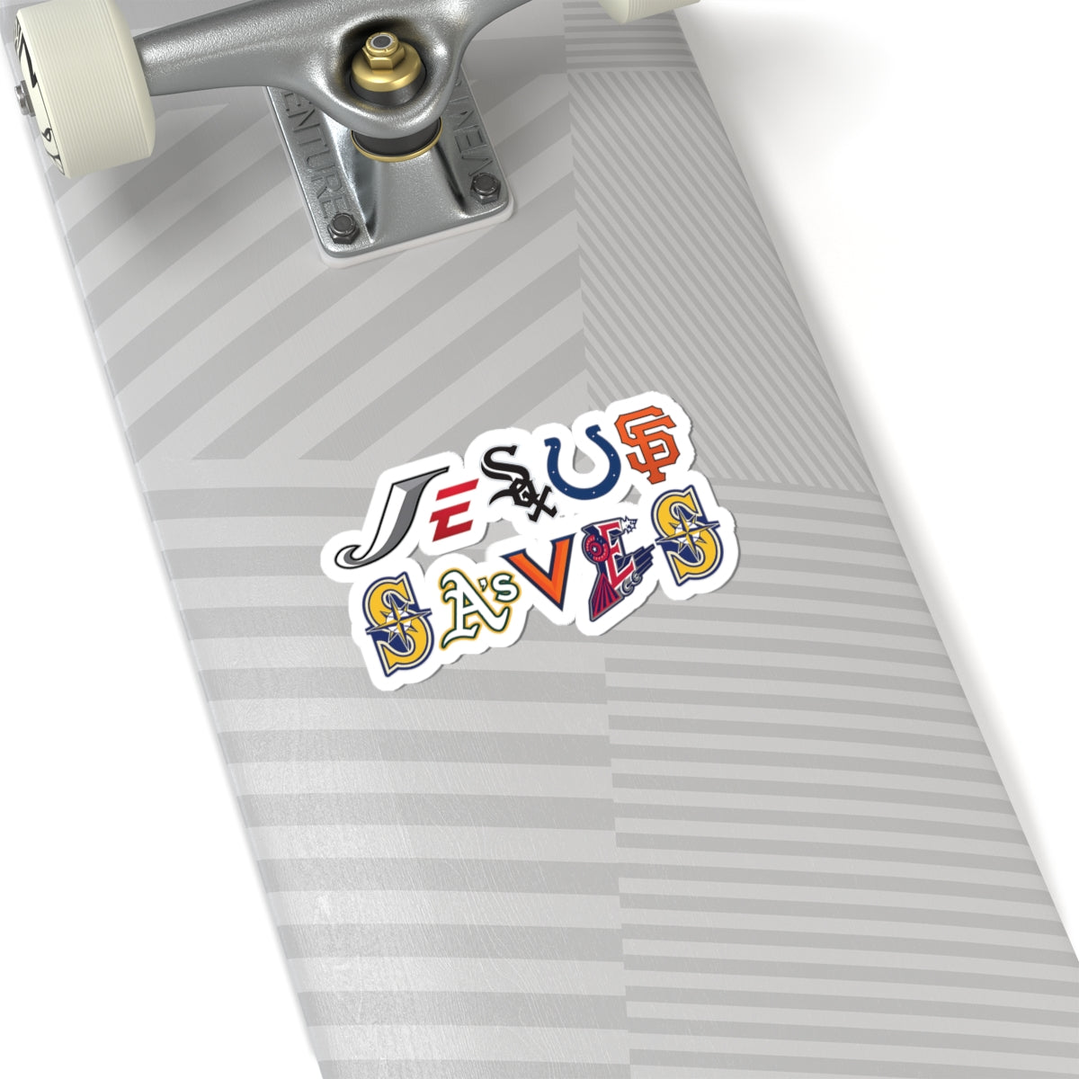 Show your faith with style using this bold “Jesus Saves” sticker, creatively crafted with iconic sports team logos to spell out the powerful message. Perfect for water bottles, laptops, notebooks, or car windows, this high-quality vinyl sticker combines your love for Jesus and sports in one eye-catching design.