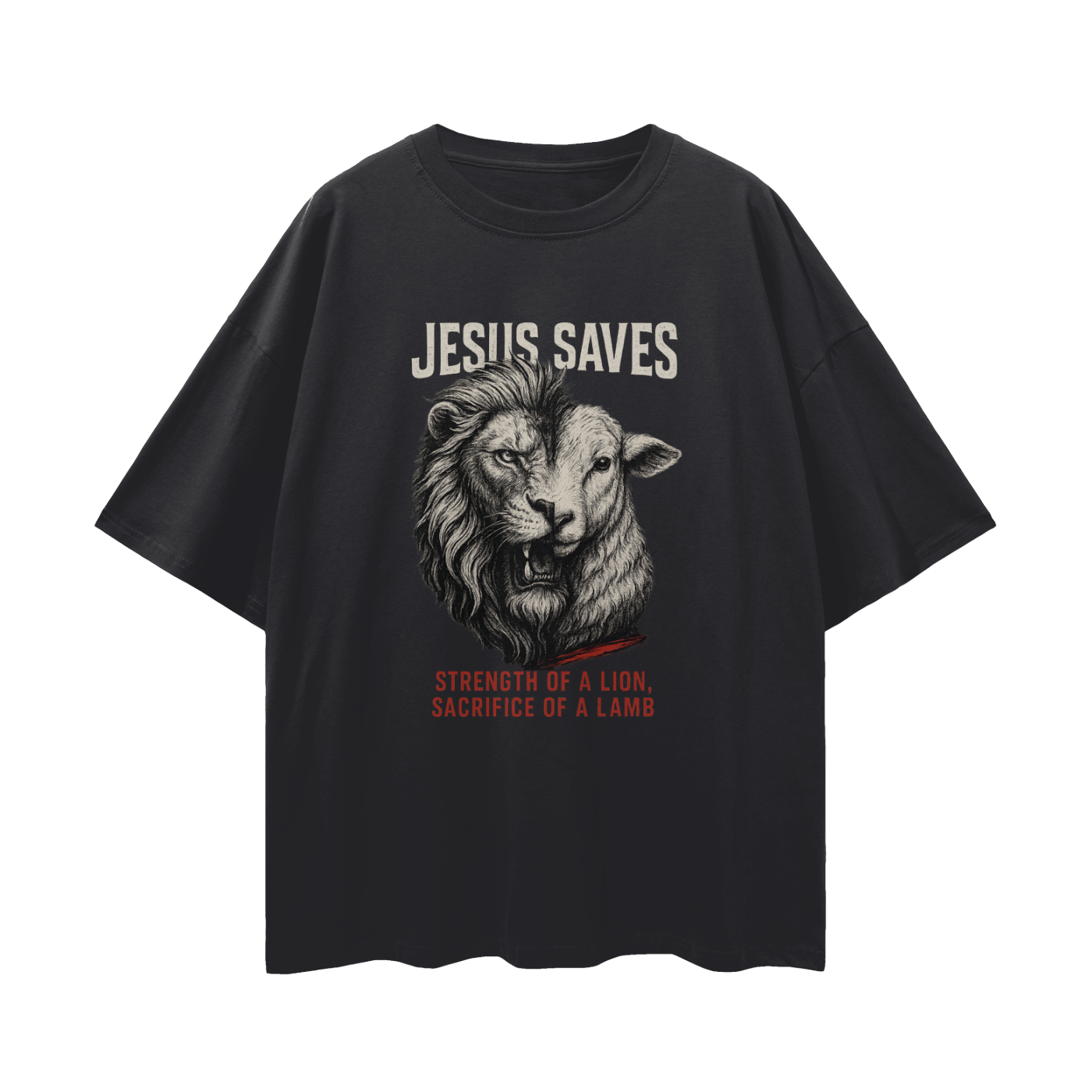 Religious "Jesus Saves – The Lion & The Lamb" Graphic Oversized T Shirt