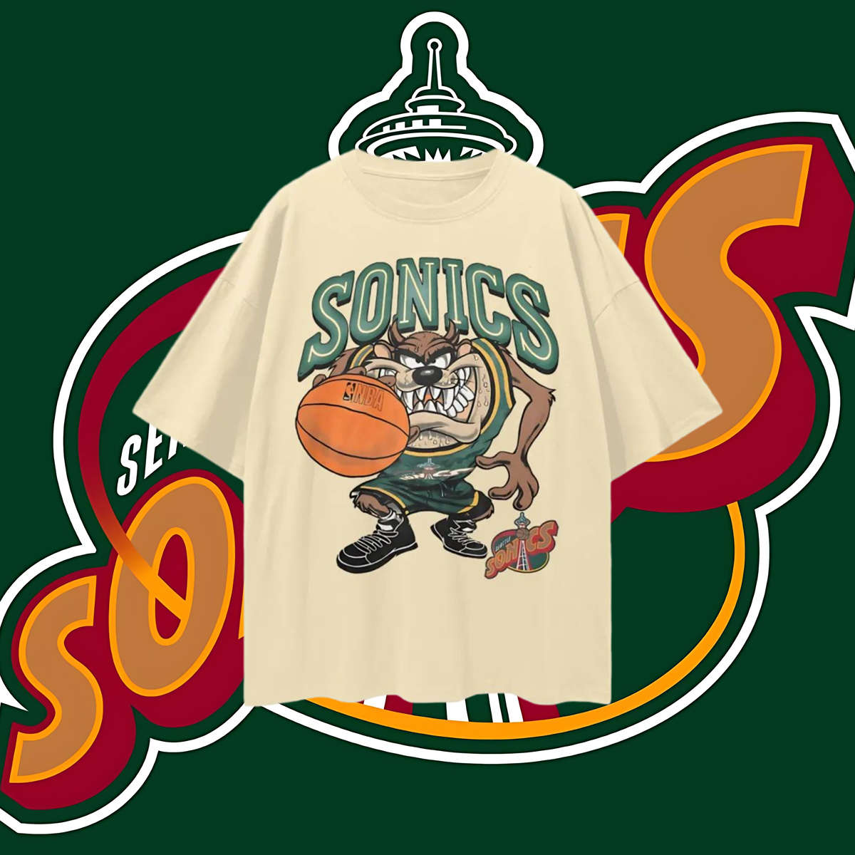 Seattle Sonics Taz The Tasmania Devil 90s Vintage Like Graphic Oversized T Shirt