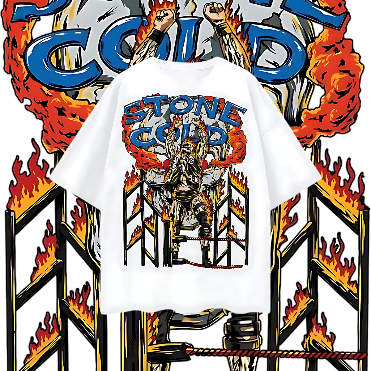The Stone Cold Steve Austin 90s Vintage-Like Graphic Oversized T-Shirt is a nostalgic piece perfect for wrestling fans and vintage apparel enthusiasts. Featuring bold, retro-inspired graphics of the iconic wrestler, this oversized tee captures the spirit of the 90s wrestling era with a distressed, vintage look. Made from comfortable, high-quality fabric, it offers a relaxed fit ideal for casual wear or as part of a throwback outfit. Whether you're a longtime Austin supporter or new to wrestling fandom, this shirt is a stylish way to pay homage to one of the most legendary figures in WWE history.