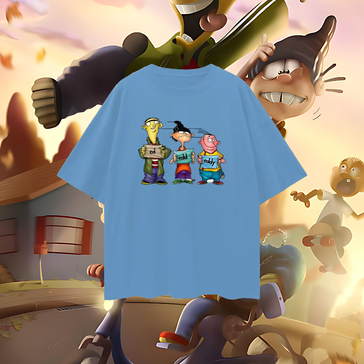 The Vintage Like Ed Edd & Eddy Mugshot Oversized T-Shirt features a playful graphic inspired by the beloved cartoon, showcasing the iconic trio in a quirky mugshot style. Made from soft, breathable fabric, this oversized tee combines comfort with a nostalgic aesthetic, making it perfect for casual wear or representing your love for 90s animation. The bold colors and detailed design make it a standout piece, ideal for fans looking to add a fun, retro touch to their wardrobe.