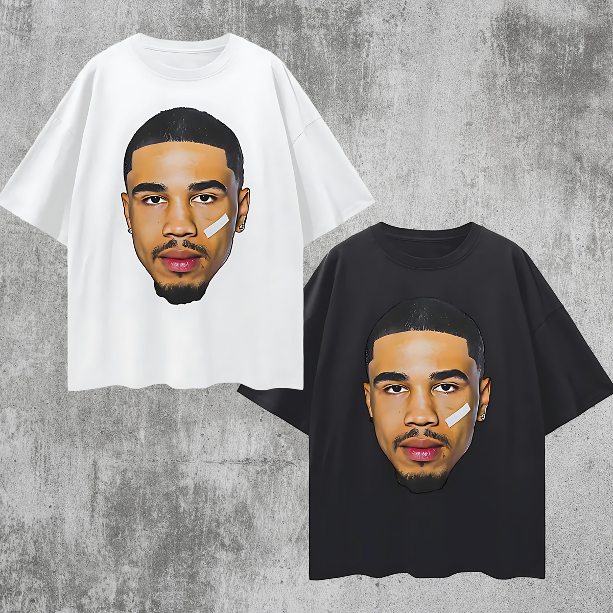 Rep your favorite NBA star in throwback style with this Vintage/Y2K Jayson Tatum Big Face Graphic T-Shirt. Featuring a bold oversized portrait of Tatum front and center, this tee channels classic 2000s sports graphics with a mix of streetwear energy and retro flair. Perfect for Celtics fans, basketball enthusiasts, or anyone looking to rock that nostalgic Y2K vibe, this shirt is a standout piece that brings together sports culture and vintage fashion.