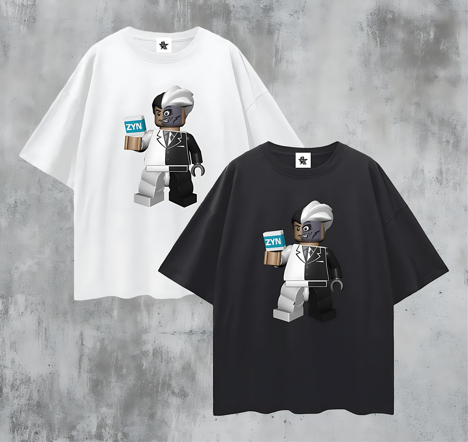 Bring humor and nostalgia together with this Vintage/Y2K Oversized Tee featuring Lego Batman’s iconic villain Two-Face holding a Zyn can. Designed with bold graphics and a playful twist, this shirt blends early 2000s streetwear vibes with modern meme culture. The oversized fit delivers that true Y2K look, perfect for casual wear, layering with cargos, or standing out in any crowd. A must-have for Lego fans, Batman lovers, and anyone who appreciates funny, offbeat fashion.