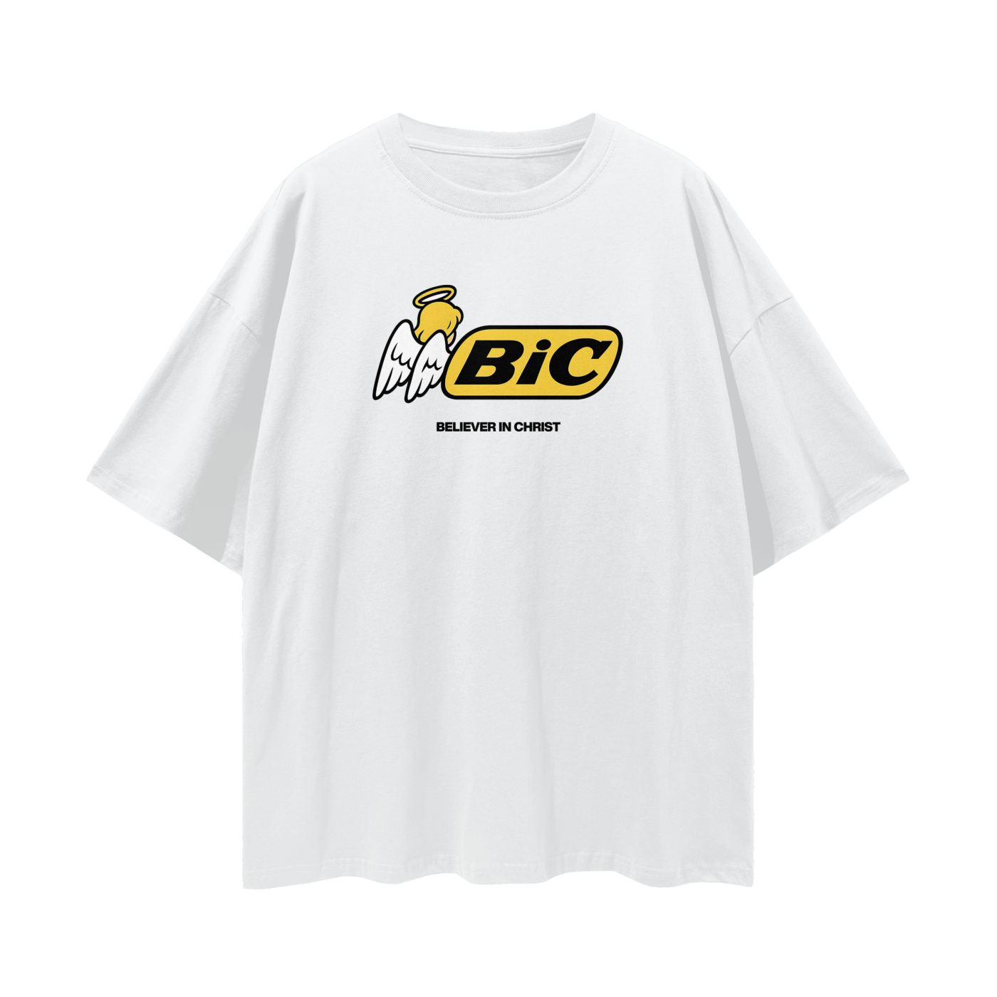 Bring faith and retro energy together with the Vintage/Y2K “B.I.C – Believe In Christ” Oversized Tee.