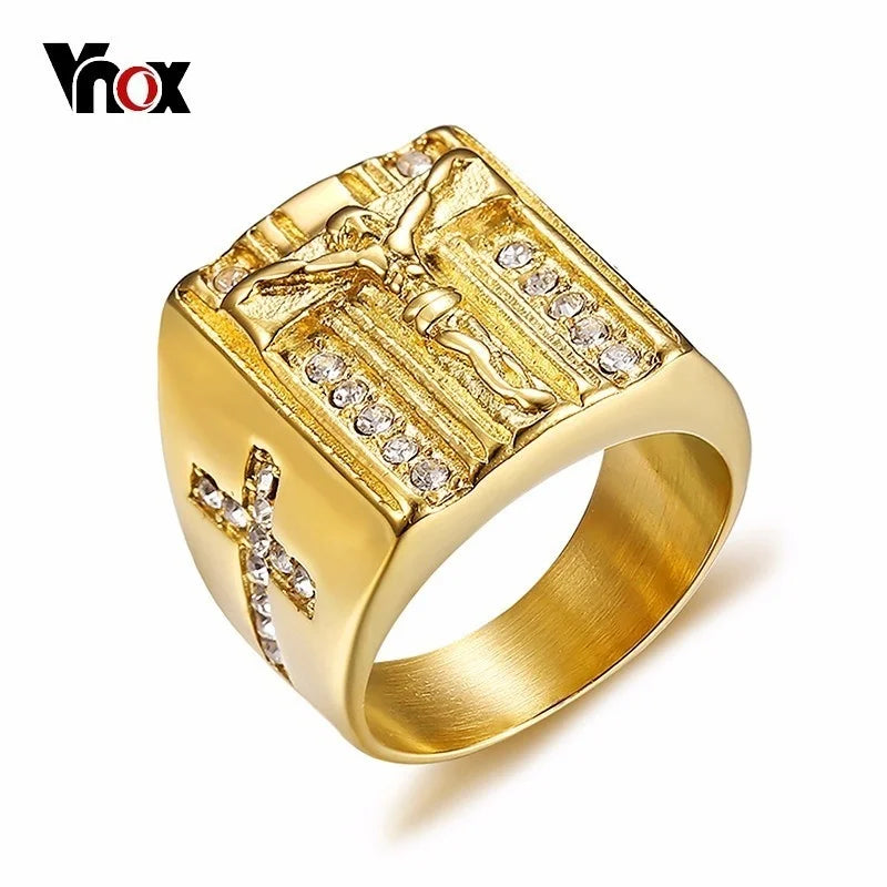 Make a bold statement of faith with our Jesus Cross Chunky Gold Ring. Designed to stand out, this eye-catching piece features a polished gold finish with a prominent cross and “Jesus” detailing at the center. Its chunky, heavyweight style brings both modern edge and timeless meaning, making it a powerful accessory for believers who wear their faith with pride. Durable, stylish, and faith-filled — this ring is more than just jewelry, it's a declaration.